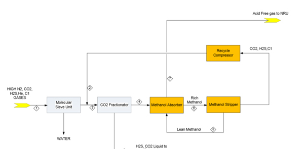 We offer the system that will removed high acid gas stream using refrigerated fractionation configuration.